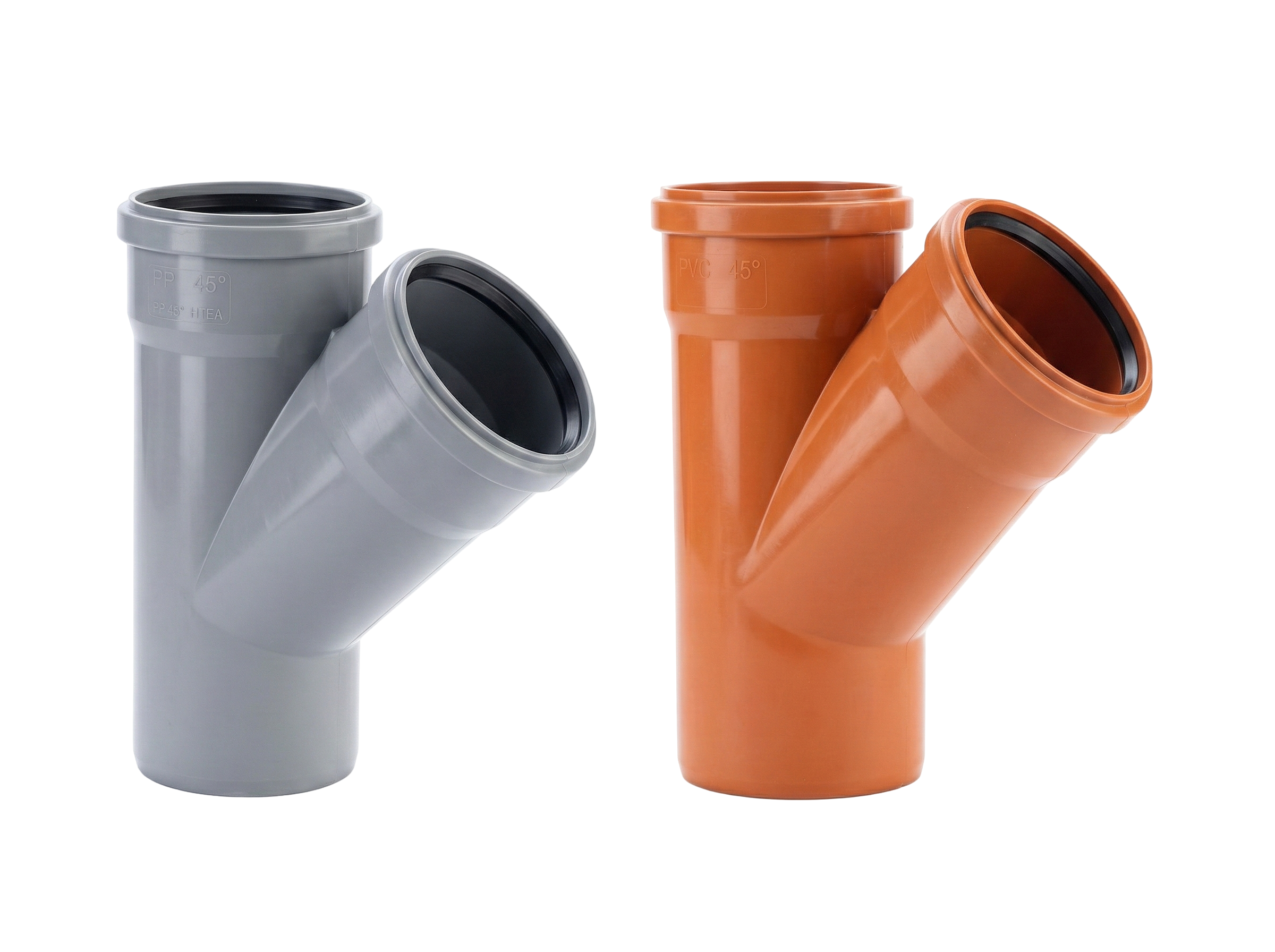 Трійник 45° (Фітинги - ht kg фітинги) - HT KG фітинги - PP 32/32, PP 40/40, PP 50/50, PP 75/75, PP 75/50, PP 110/110, PP 110/50, PP 110/75, PP 125/125, PP 125/110, PVC 160/110, PVC 160/160, PVC 160/125, PVC 200/200 (Фітинги).